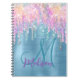 Chic pink aqua unicorn dripping glitter monogram notebook