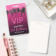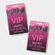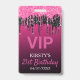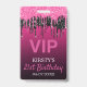 Chic Birthday VIP badge features a pink background with pink and black dripping glitter.