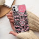 Chic pink black flower aesthetic Custom Monogram Case-Mate iPhone Case