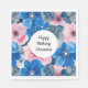 Chic Pink Blue Floral Birthday Napkin
