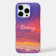 Enjoy nature’s beauty whenever you use this stunning, inspirational photo personalised name cell phone case of a gorgeous, colourful yellow, pink, orange and blue sunset, tipped with tiny, sparkly purple and gold, girly glam confetti dots. Makes a great gift for someone special!
