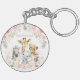 Chic Pink Blush Floral Jungle Safari Baby Animals Key Ring