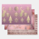 Three different designs of wrapping paper featuring a pink blush marble, dusky purple and silver diamond harlequin pattern on pink blush and gold christmas symbols including reindeer, snowflakes christmas tree on a dusky pink blush backdrop. Festive chic modern and stylish