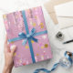 Chic pink damask dripping unicorn glitter wrapping paper
