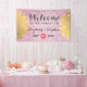 Modern Elegant Vintage Chic Pink Glitter and Gold Floral Wedding Banner