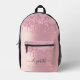 Chic girly backpack featuring pink faux glitter drips and your name in a trendy script with swashes on the front pocket.