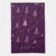 Chic pink glitter purple christmas trees name kitchen towel. Personalize name.