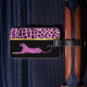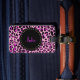 Pretty custom luggage tag done in a pink and black leopard print. Graphics of a black circular disc, in the middle, has pink text ready to personalise. The back is done in solid black, on the bottom, with graphics of a pink leopard, and pink leopard pattern, at the top. Fashionable tag for luggage, backpacks, or purses.