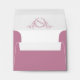 Elegant wedding RSVP envelope in pink with printed return address and delicate monogram wreath inside with the couple's initials. Design coordinates with our "Mauve Watercolor Wedding Monogram" RSVP cards. NOTES: 1) the default "A2" envelope size selected fits our coordinating 3.5" x 5" RSVP card size, if you make changes to the RSVP card size, please make sure to select the correct RSVP envelope size (see each envelope size measurements explained on product page bottom left area), 2) Option to choose paper type from basic paper or linen. Envelope design with your RSVP return address information with delicate "Kindly deliver to:" phrase in modern handwritten calligraphy on the front. Part of our "Mauve Pink Watercolor Botanical Monogram Wedding" Collection with a variety of coordinating products available. Visit the entire collection with this link: https://www.zazzle.com/collections/mauve_pink_watercolor_elegant_monogram_wedding-119235672549123464