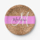 Chic Pink & Pumpkin Glitter Sparkles Monogram Name Paper Plate