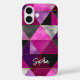 Elegant pink purple grey geometric triangles iPhone 16 Case. This iPhone case showcases an eye-catching arrangement of black, grey and hot pink triangles, blending bold colours in an abstract, futuristic pattern. The sharp triangular shapes give the case a sense of energy and modern edge, perfect for making a statement.