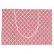 Add a sophisticated modern vibe to your party style with this trendy pink and white quatrefoil pattern large size gift bag with an elegant framed monogram. Personalise this stylish design by adding the name and monogrammed initial of the party girl.