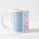 Chic Pink Roses, Turquoise Stripes: Big Coffee Mug