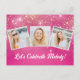 Chic Pink Sparkle Photo Collage Birthday Party Invitation Postcard