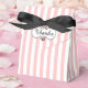 Pretty feminine occasion favour gift box done in pink and white stripes. A black and white decorative text area, on the flap, has black custom text simply reading Thanks.