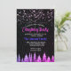 Chic black Christmas pink trees faux glitter holiday lights monogram Christmas invitation card. Shimmering cute glittery Christmas card. Perfect for sending out to family or friends for the holiday season. To make it extra special it is embellished with beautiful faux glitter. This design can also be transferred onto any product on zazzle. You can personalise it with your own text and information.