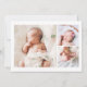 This stylish and elegant 2-sided photo birth announcement card features four (4) photos (front & back) of your newborn baby girl, custom text that can be personalised, and faded pink watercolor flower & greenery. Customise this product by adding your newborn baby's name, pictures, birth record, and the parents' names.