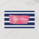 Chic Pink Watercolour & Blue Stripes Social Media Business Card