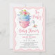Chic Pink Wave Floral Baby Shower Tea Party Invitation