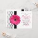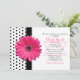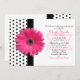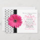 A chic, retro black and white polka dot pattern is paired with a pretty hot pink daisy flower and simulated ribbon. There is a Jewish Star of David under the invitation wording that can be removed in the design tool if you wish. This girly design is perfect for a girl who loves daisies and polka dots!