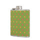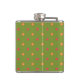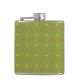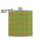 A chic Hip Flask, with Polka Dots in shades of Pink, Orange on a Green background. The colours coordinate with the Posh & Painterly 'Poppy Fields' Collection by Judy Adamson.