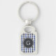 chic preppy blue black gingham pattern monogram key ring