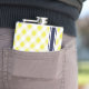 chic preppy yellow navy gingham pattern monogram hip flask