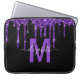 Chic Purple Dripping Glitter Monogram Name Laptop Sleeve
