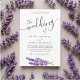 This modern and elegant wedding invitation features refined “the wedding of” calligraphy in dark grey on a crisp white background, accented by delicate purple lavender artwork. The minimalist design blends timeless style with a soft botanical touch, making it perfect for garden, rustic, boho, or countryside weddings. Easily customise the text to create a truly unique and personal invitation for your special day