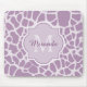 Chic Purple Giraffe Print With Monogram and Name Mouse Pad