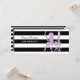 A trendy purple and black hair and beauty salon gift certificate rack card with a purple silhouette of a girly girl wearing glitzy purple glitter-like shoes with bows. She is admiring her stylish reflection in a personal mirror. Personalise this gorgeous glam design by adding the name of the beautician or hairstylist, and hair and beauty boutique information as well as the gift certificate info.