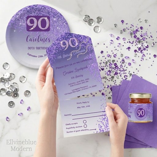 Elegant Purple Glitter | 90th Birthday SuiteDesigned by Florence C