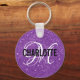 Chic purple glitter monogram name keychain