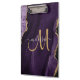 Chic Purple Gold Glitter Agate Custom Monogram Clipboard