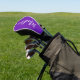 A pretty personalized purple monogram golf head cover for a girl who loves simple, handwritten gifts. Beautiful white cursive script spelling out your name in elegant script.