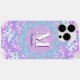 Colourful retro monogram phone case in purple and blue colours.