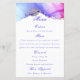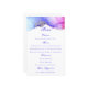 This menu is wider than our other option. The added width gives extra room for long-name menu items. A modern design with a unique, luxe jewel tone abstract alcohol ink artwork printed on a white background. Easily edit the menu items. If the font size or margins need adjusting, please use the design tool to change the text bounding box or font size to suit your layout better. The back of the card is white. If you would like another colour, enter the design tool and select another background colour for the back of the menu. The font colour used is colour code #2a18e1. If you need help, we are happy to help; message us on Zazzle Chat. Elegant Purple and White Wedding Menu.