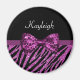 Chic Purple Zebra Print FAUX Glitz Bow With Name Magnet
