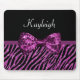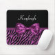 Chic Purple Zebra Print FAUX Glitz Bow With Name Mouse Pad