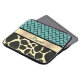 A chic quatrefoil pattern on a turquoise backdrop along with a gold ribbon for personalisation and below that is stylish giraffe print for animal exotic vibes.