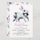 Purple, pink, violet chic woodland racoon bridal shower invitation. Invite features feathers, racoon, and custom pattern on back of invite.