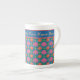 Chic Rangoli Floral Pattern and Polka Dots, Blue Bone China Mug