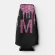 Keep your drinks cool in style with this custom glitter and glam can cooler. This girly design features a border at the top of faux purple dripping glitter with sparkles. In the centre is your monogram initial in purple with your name in an elegant hand lettered pale pink script on a background of black. Designed just for you by Extreme Tees!