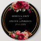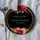 Elegant chic dark red burgundy and black wedding button with beautiful flowers and green leaves. An enchanting fusion of elegance and gothic charm. These beautiful invitations are in rich black and red hues. The calligraphy is elegant and chic and can be easily customised. Romantic and modern floral wedding invitations with classic colours that never go out of style.