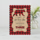 Chic Red Buffalo Plaid Birthday THREE Custom Invitation