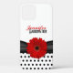 Personalise the name on this chic black and white polka dot red gerbera daisy iPhone case. To change the name, use the personalise it option. For more extensive changes to the text, including changes to the font, font colour, font size, or text placement, use the customise it option. Add some trendy feminine style to your iPhone.