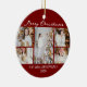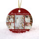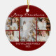 Chic Red Merry Christmas Photo Collage 2025 Ceramic Ornament