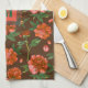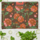 Chic Red Peonies Blooming Flowers Pattern Monogram Tea Towel