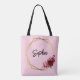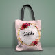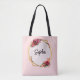 Chic red pink floral and faux gold wedding tote bag