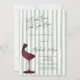 Chic Red Wine Glass Green Striped Invitation